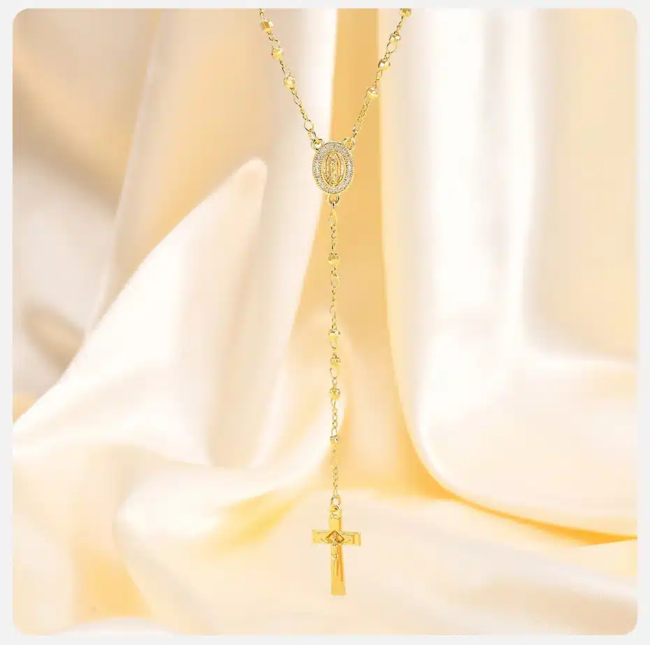 Le collier chapelet or plaît autant pour son symbolisme que pour son côté mode. Certains le choisissent pour porter un signe de leur foi, d’autres pour ajouter une touche dorée pleine de caractère. C’est un bijou qui attire ceux qui veulent une pièce qui a du sens, qui inspire la paix ou la protection, tout en restant très simple à porter au quotidien.
