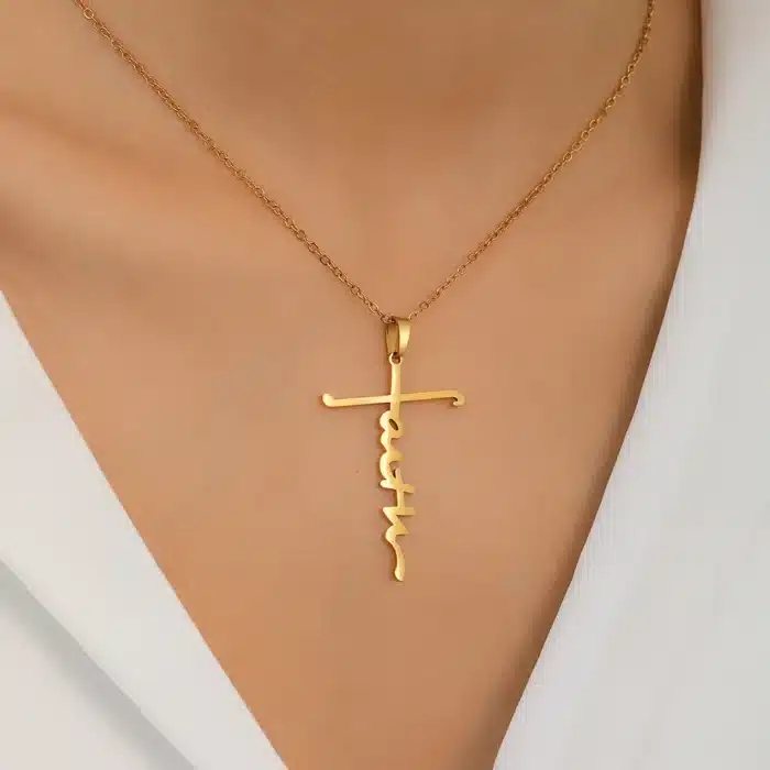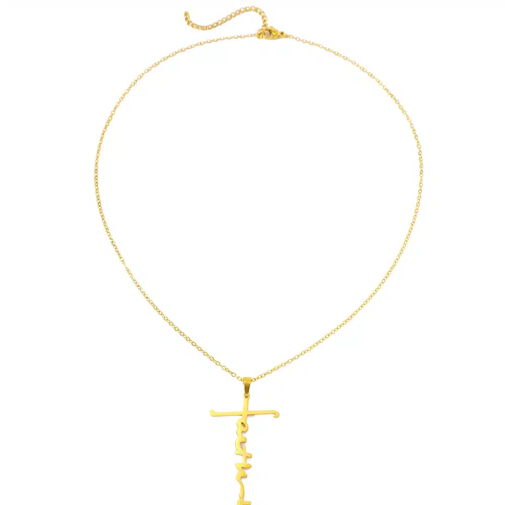Exprimez votre foi avec le collier faith écrit, un bijou minimaliste qui allie élégance et symbolisme. Son pendentif raffiné fusionne une croix stylisée avec le mot “Faith” écrit en lettres cursives, offrant un design unique et inspirant.