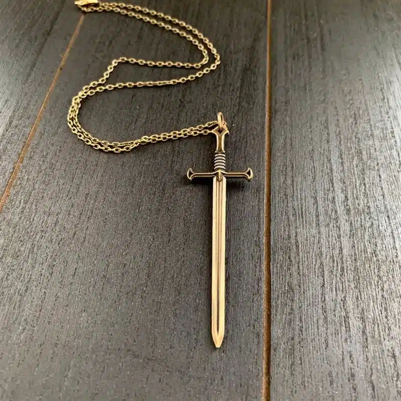 Ce collier est proposé en couleur argent ou or, pour s’adapter à différents styles. Il plaît à ceux qui recherchent un bijou fort, lié à la force, à la protection et au courage. Ce collier grande épée s’intègre aussi bien dans un look gothique ou fantasy que dans une tenue simple, avec une touche affirmée et symbolique.