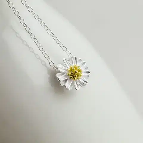 Le design minimaliste du collier marguerite fleur argent permet de l’associer facilement avec différentes tenues, que ce soit un look simple ou plus habillé. Il peut se porter seul pour un rendu discret ou avec d’autres colliers fins pour créer un effet de superposition léger et équilibré.